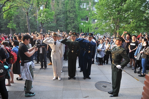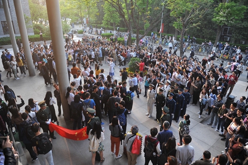 “我爱你中国,我要把美好的青春献给你,我的母亲,我的祖国。”4月26日傍晚,农园食堂前,北京大学歌剧研究院学生与歌剧表演艺术家金曼共同唱响《我爱你中国》等经典曲目,迎来师生的阵阵掌声和欢呼。喜迎北大百廿校庆,由校庆晚会工作组策划组织,包括歌剧研究院和各类学生社团在内的众多北大学子采取丰富多样的形式,献礼120周年校庆,构成了校园一道亮丽的风景线。